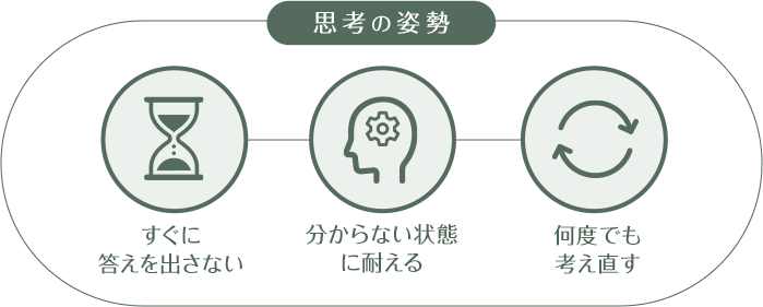 だからこの講座では、すぐに答えを出さない、分からない状態に耐える、何度でも考え直す、という思考の姿勢を大切にします。
